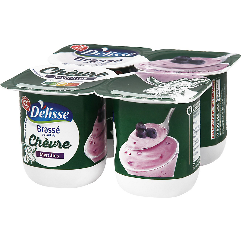 Ingrédients: Lait entier de chèvre pasteurisé 82 % ; sucre 8 % ; myrtille 7 % ; amidon de maïs ; épaississants : pectines, gomme xanthane ; arôme naturel ; ferments lactiques.