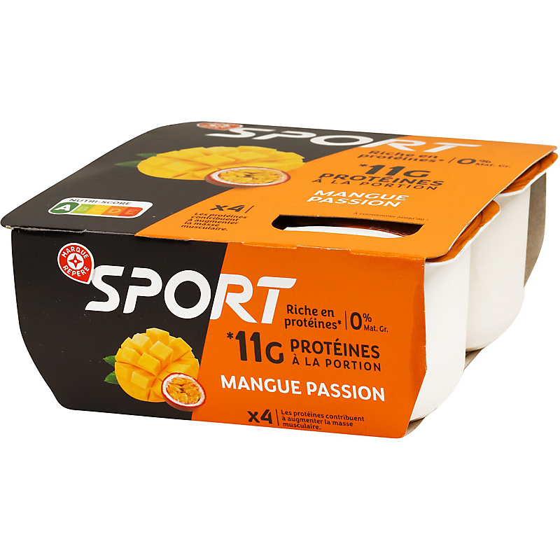 Spécialité laitière à la mangue et fruit de la passion, aromatisée, avec édulcorant. SPORT