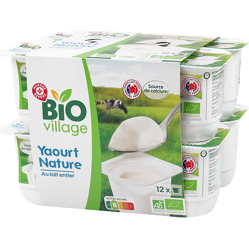 Yaourt nature au lait entier - Produit issu de l'agriculture biologique BIO VILLAGE