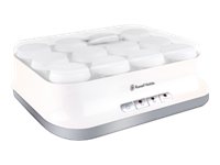 N'achetez plus vos yaourts, faites les vous-même pour toute votre famille. Il suffit de 2 yaourts (ou d'un peu de levure) mélangés à 2L de lait pour obtenir 12 pots de yaourt. Natures, bio, sucrés, Stevia, soja, aux fruits... à vous de choisir le parfum de vos yaourts! Fabrication maison sans ajout d'ingrédients chimiques, ni conservateurs. Versez la préparation dans les 12 pots et sélectionnez votre programme. 7H pour des yaourts veloutés, 9H pour des yaourts plus fermes ou programmation en continue. 6 planches de stickers arômes offertes pour personnaliser vos pots (144 stickers): Fraise, abricot, sucré, 0%, Bio, chocolat, vanille, mûre, noix de coco, cerise.
