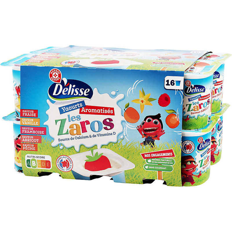 Yaourts sucrés, aromatisés, saveurs : Abricot, Fraise, Framboise, Pêche et Vanille DELISSE