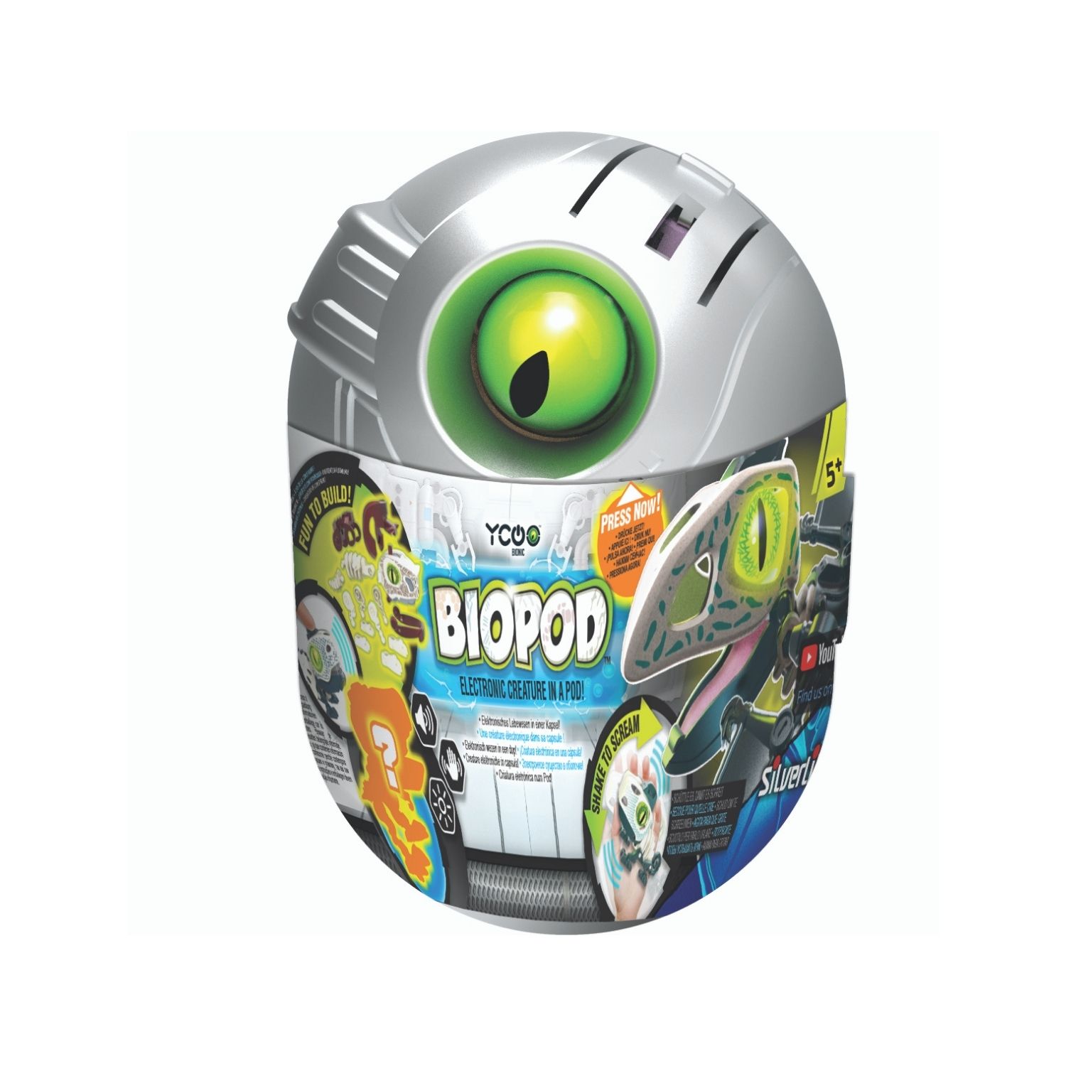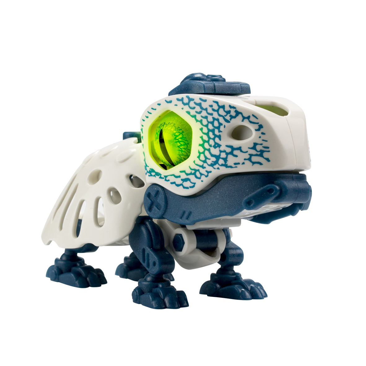 Robot Biopod dans sa capsule - 9 cm Découvre une créature venue tout droit d'un autre monde. Ses yeux qui s'allument et les bruits effrayants à travers sa capsule prouvent qu'elle est encore en vie. Il est temps de la délivrer pour la reconstruire ! Puis fais la réagir en appuyant sur sa tête : sa mâchoire s'ouvre alors pour laisser s'échapper des cris féroces. Effets sonores et lumineux. 8 créatures à collectionner. A partir de 5 ans.