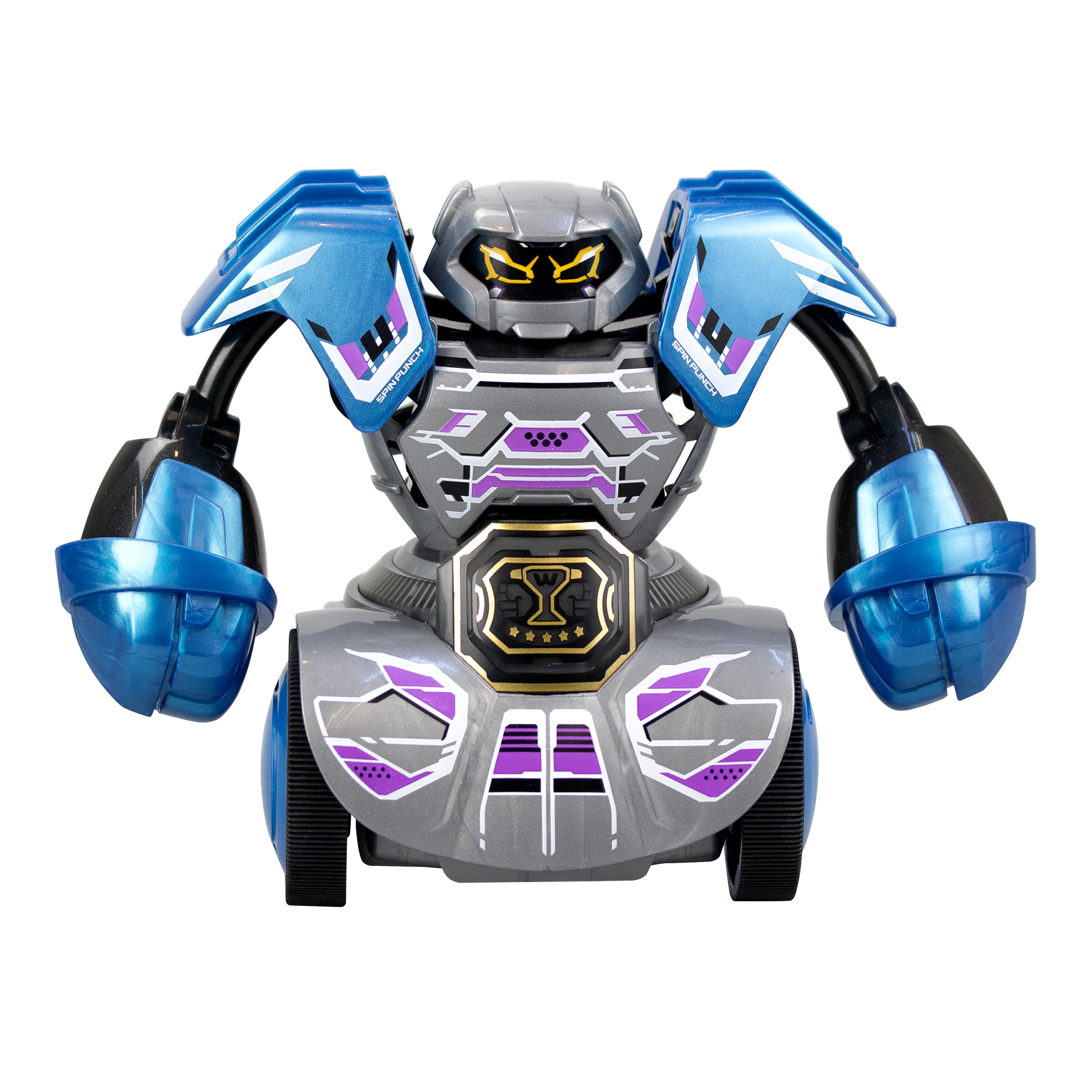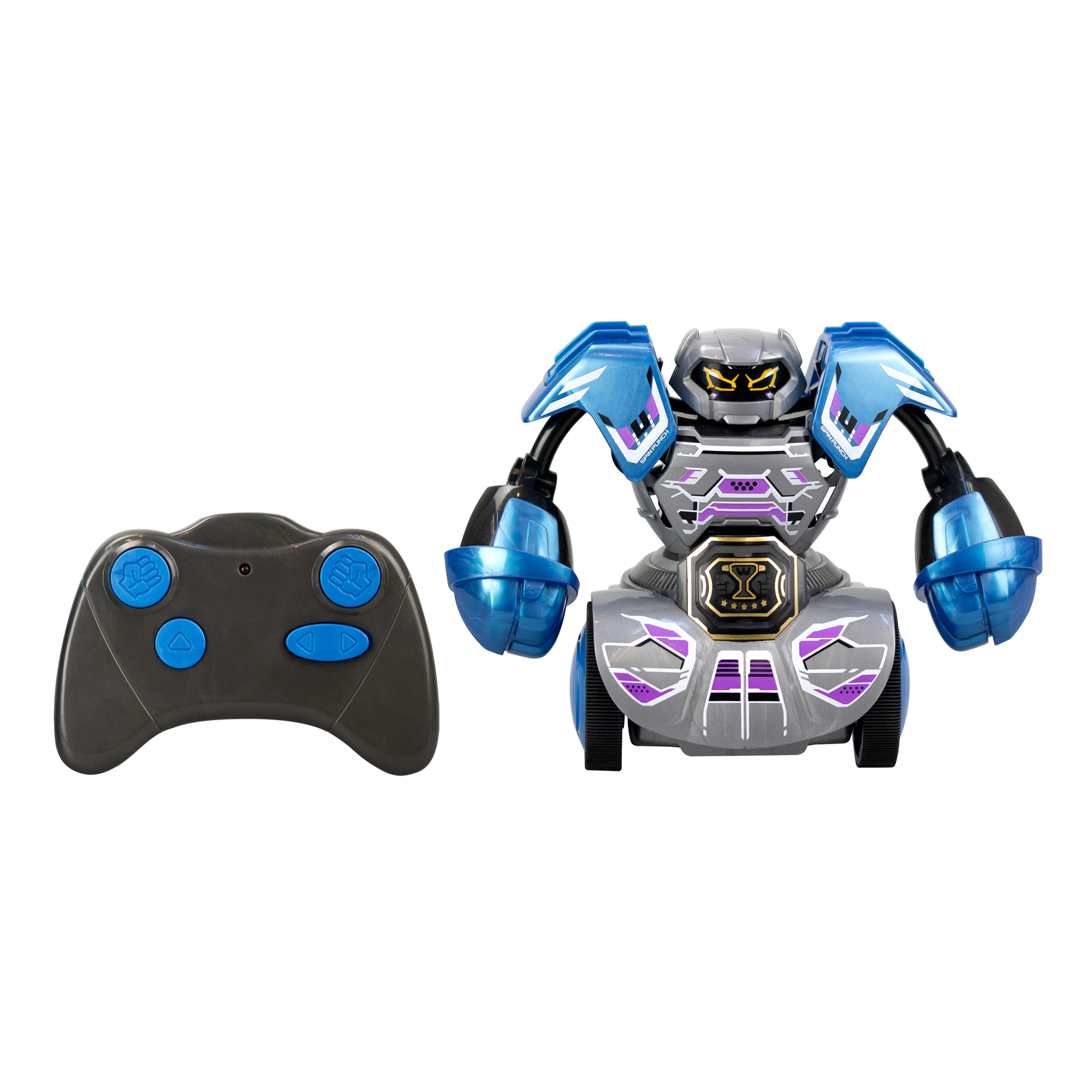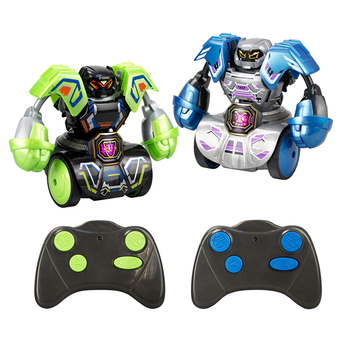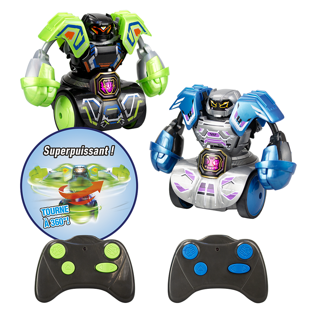Robot Kombat Tornado. Du combat, toujours plus de combats ! Les robots Kombat 2.0 sont arrivés ! Une nouvelle façon révolutionnaire de combattre avec des frappes surpuissantes à 360°. Vise le coeur de ton adversaire et fais exploser son armure pour le mettre K.O ! Mais attention au retour de bâton avec la nouvelle fonctionnalité dévastatrice "Tornado". Les robots se contrôlent grâce à leurs télécommandes infrarouges. Leurs yeux LED s’illuminent et ils font du bruit lorsqu’ils frappent ! Possibilité de jouer jusqu’à 4 joueurs simultanément. Le pack contient 2 robots télécommandés et 2 télécommandes. A partir de 5 ans. Fonctionnent avec 6 piles "AA" (robot) et 4 piles "AAA" (télécommande) non incluses.