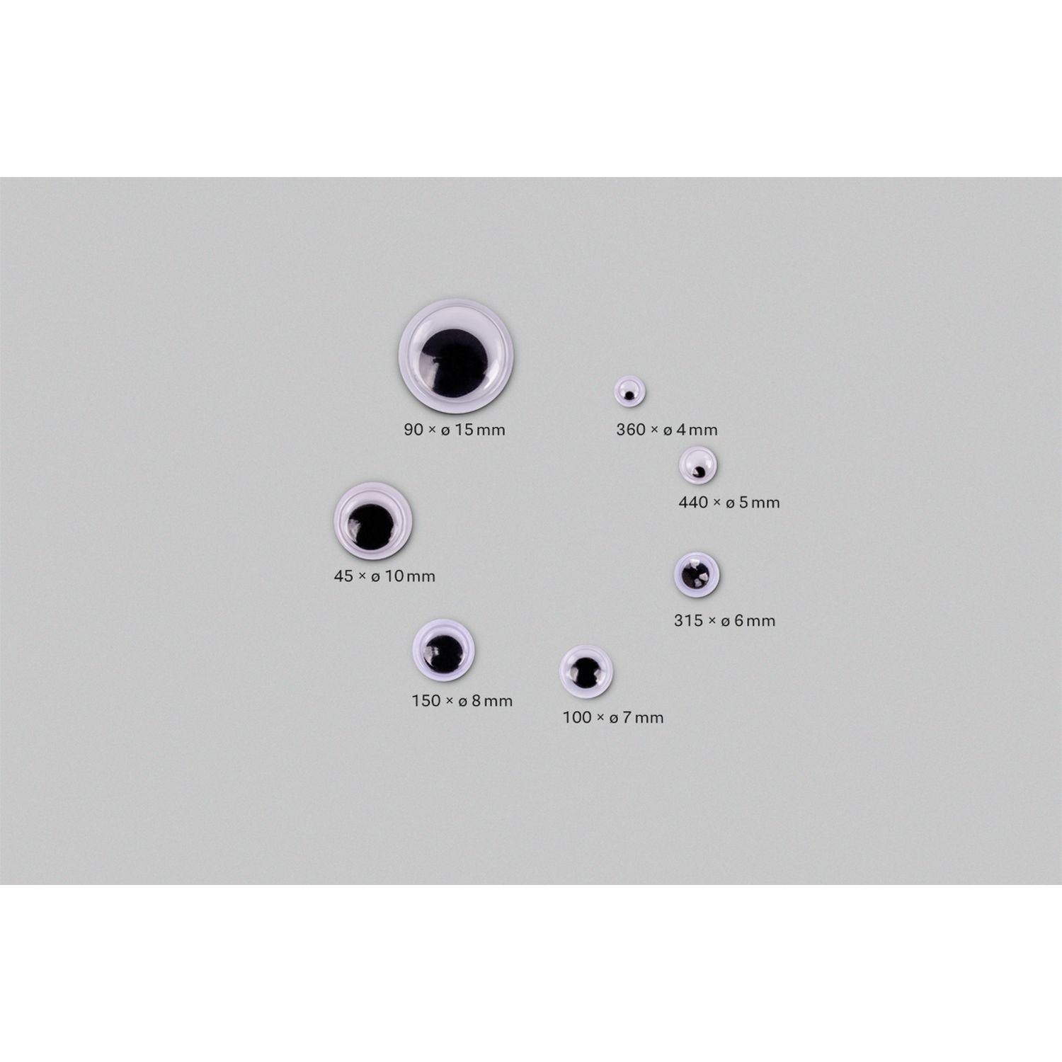 Il s'agit d'un grand assortiment d'yeux adhésif qui mesurent entre 4 et 15mm