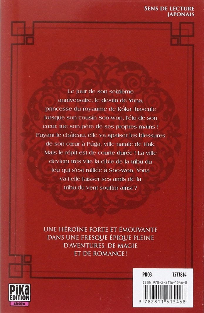 Le jour de son seizième anniversaire, le destin de Yona, princesse du royaume de Kôka, bascule lorsque son cousin Soo-won. l'élu de son coeur, tue son père de ses propres mains ! Fuyant le château, elle va apaiser les blessures de son coeur à Fûga, ville natale de Hak. Mais le répit est de courte durée ! La ville devient très vite la cible de la tribu du feu qui s'est ralliée à Soo-won. Yona va-t-elle laisser ses amis de la tribu du vent souffrir ainsi ?