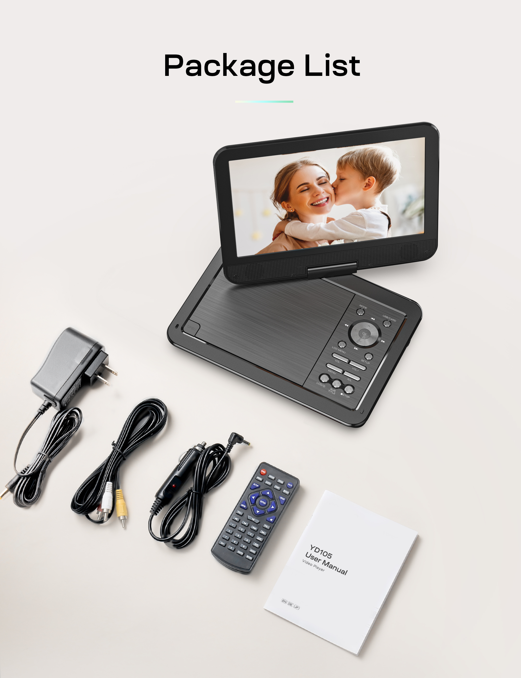 🎁【Écran HD et Écran rotatif】 : la résolution du YOTON lecteur dvd portable est de 1024 x 600, vous pouvez donc profiter d'une qualité d'image haute définition lorsque vous regardez des films, ce qui améliore considérablement l'expérience visuelle. De plus, l'écran de protection des yeux du lecteur DVD portable YOTON peut pivoter à 180° et 270°, vous pouvez donc modifier l'angle autant que vous le souhaitez pour obtenir l'angle de vision parfait en fonction de vos besoins. 🎁【Facile à transporter, regarder des films à tout moment, n'importe où】: Il n'y a pas de meilleur moyen de passer le temps que de regarder l'un de vos films préférés. YOTON lecteur DVD portable est suffisamment compact et léger pour être facilement transporté n'importe où. Si vous cherchez un moyen de divertir vos enfants lors de vos déplacements, un lecteur DVD portable est la solution. De nombreux parents ont confirmé que les lecteurs DVD de voiture peuvent garder les enfants silencieux. 🎁【Batterie durable et excellents haut-parleurs】: Le lecteur DVD portable YOTON est doté d'une batterie au lithium polymère rechargeable intégrée durable et sûre, qui peut assurer jusqu'à 4 à 6 heures de temps de lecture en temps réel, peut prendre en charge le visionnage de 2 à 3 films. Le lecteur DVD portable YOTON dispose également d'excellents haut-parleurs stéréo doubles, qui peuvent fournir une qualité sonore plus forte et plus claire, le son peut être ajusté de 0 à 20. 🎁【Lecteur DVD Multifonctionnel】: Le YOTON lecteur dvd portable dispose d'une fonction de lecture très puissante. Par exemple : fonction de lecture de la mémoire, avance et retour rapides de la vidéo, prise en charge de plusieurs langues, fonction de sous-titres, etc. De plus, le package du YOTON lecteur dvd portable est livré avec un câble de données AV trois en un, qui peut être bien connecté au téléviseur et profiter des effets visuels d'un écran plus grand avec la famille et les amis. 🎁【Compatibilité étendue et service premium】 : en plus des films DVD standard, YOTON lecteurs DVD portables sont compatibles avec une variété de formats de disque, y compris les films personnels et les émissions de télévision stockés au format DVD enregistrable, ainsi que les CD audio et les disques contenant fichiers musicaux numériques (les disques Blu-ray ne sont pas pris en charge).