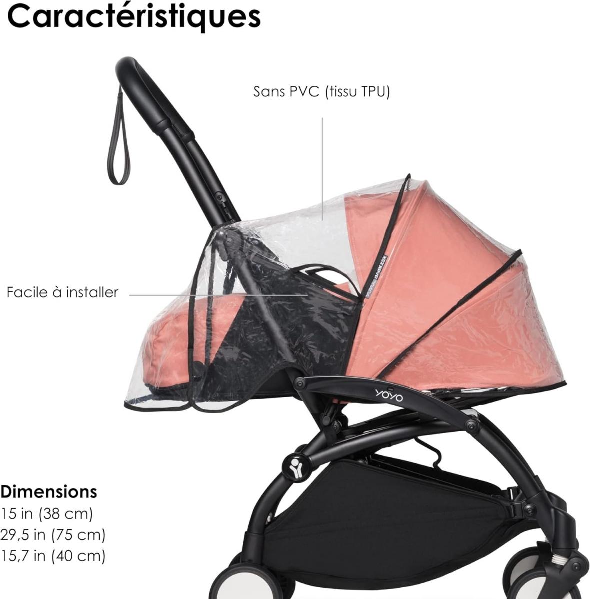 Les protections pluie protègent votre enfant du mauvais temps. Il existe des protections pluie adaptées à YOYO en pack nouveau-né, nacelle et pack couleur 6+. Elles sont faciles à installer et se rangent rapidement dans le panier ou dans la poche arrière de la poussette quand le beau temps revient.