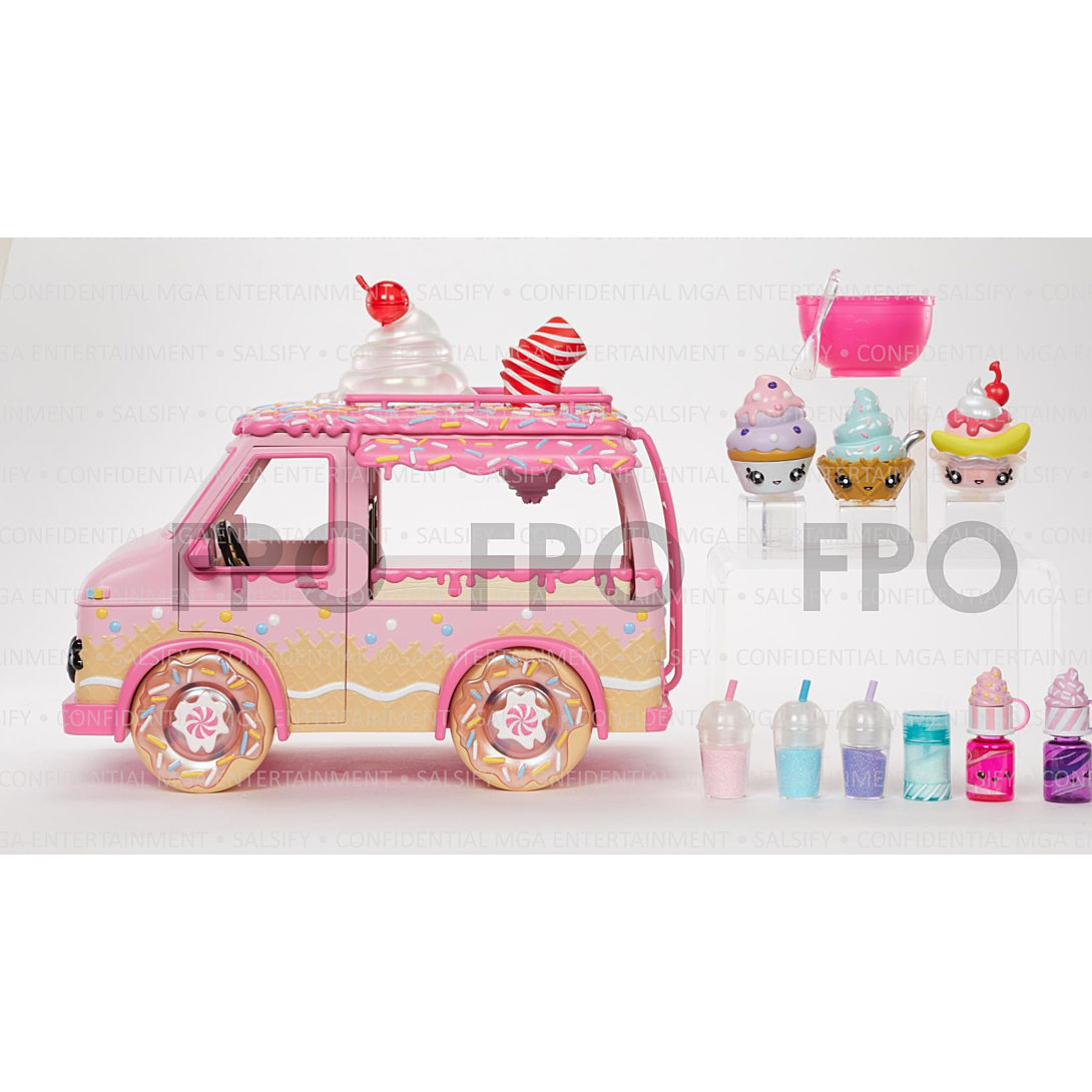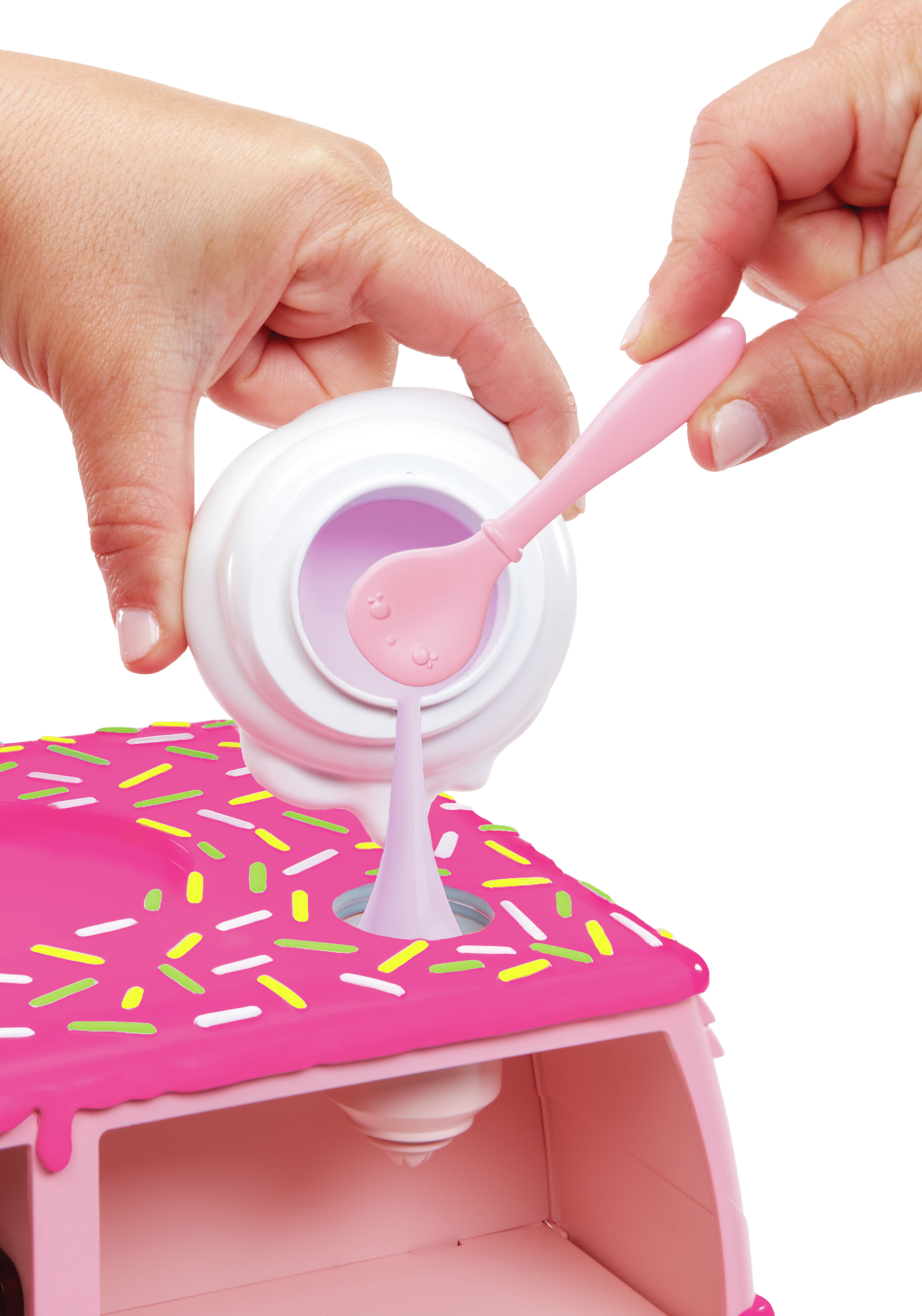 Fabrique ton gloss avec ce camion ! Retire le couvercle, ajoute la base, le(s) parfum(s) et les paillettes. Tourne la paille pour mélanger et regarde le gloss s’ajouter comme par magie dans le Num Nom. Les Yummis de 10 cm se glissent à l’intérieur pour partir à l’aventure ! Dès 4 ans.