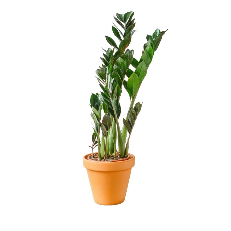 Le Zamioculcas Zamiifolia L, plus communément appelé ZZ Plant, est une plante d'intérieur populaire de la famille des Araceae. Originaire d'Afrique de l'Est, cette plante a été largement cultivée pour son attrait esthétique et sa résilience.Le nom latin Zamioculcas Zamiifolia reflète les caractéristiques uniques de la plante. Le genre "Zamioculcas" fait référence à la ressemblance de la plante avec les plantes du genre Zamia, tandis que "Zamiifolia" signifie "feuilles de Zamia" en latin.La ZZ Plant se distingue par ses tiges épaisses et charnues, appelées pétioles, qui supportent des feuilles luisantes et de couleur vert foncé. Les feuilles sont lisses, ovales et disposées en alternance le long des tiges, donnant à la plante un aspect luxuriant et soigné. En plus de son apparence attrayante, la ZZ Plant est également réputée pour sa robustesse. Elle peut survivre dans des conditions de faible luminosité et nécessite peu d'entretien, ce qui en fait une option idéale pour les jardiniers d'intérieur débutants ou occupés.La ZZ Plant peut atteindre une hauteur de 60 cm à 1 mètre, avec des feuilles qui peuvent mesurer jusqu'à 15 cm de long. Elle produit rarement des fleurs, mais lorsqu'elle le fait, celles-ci sont de petites spathes de couleur crème qui émergent de la base de la plante.En résumé, le Zamioculcas Zamiifolia L est une plante d'intérieur attrayante et robuste qui apporte une touche de verdure dans n'importe quel espace intérieur. Sa facilité d'entretien et sa tolérance à une variété de conditions de croissance en font une option populaire pour la décoration intérieure.