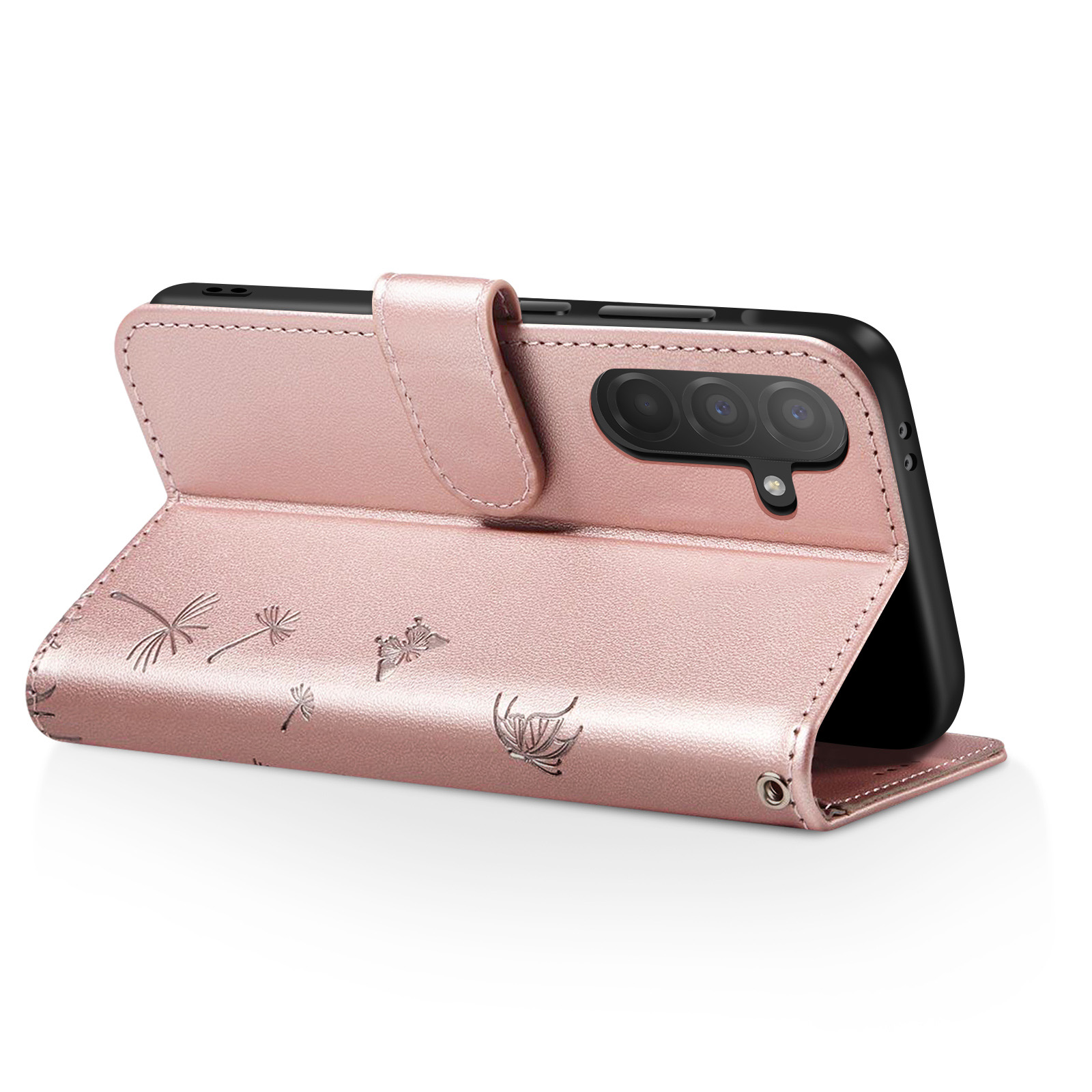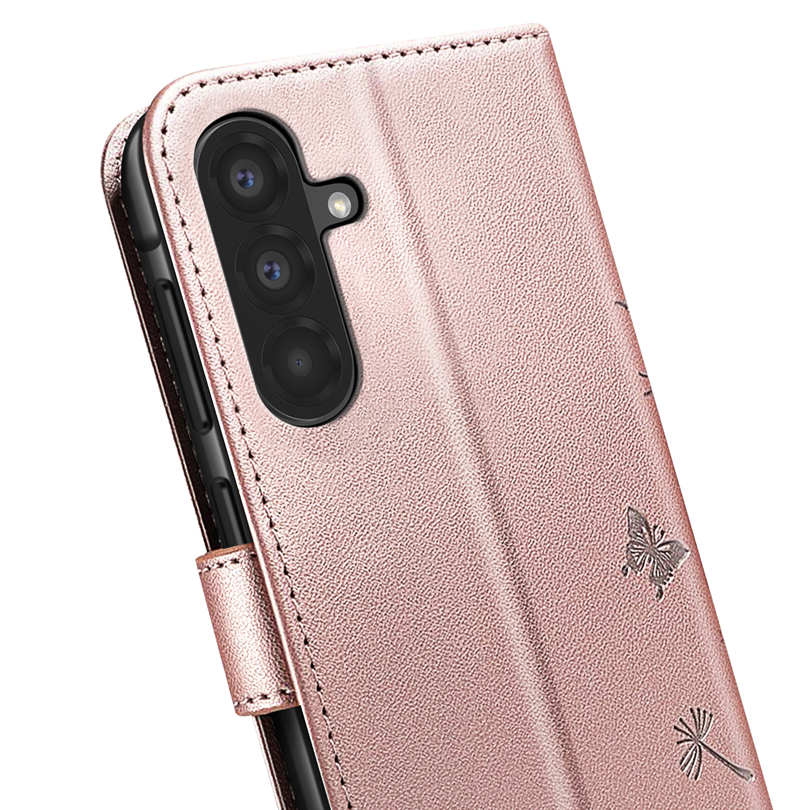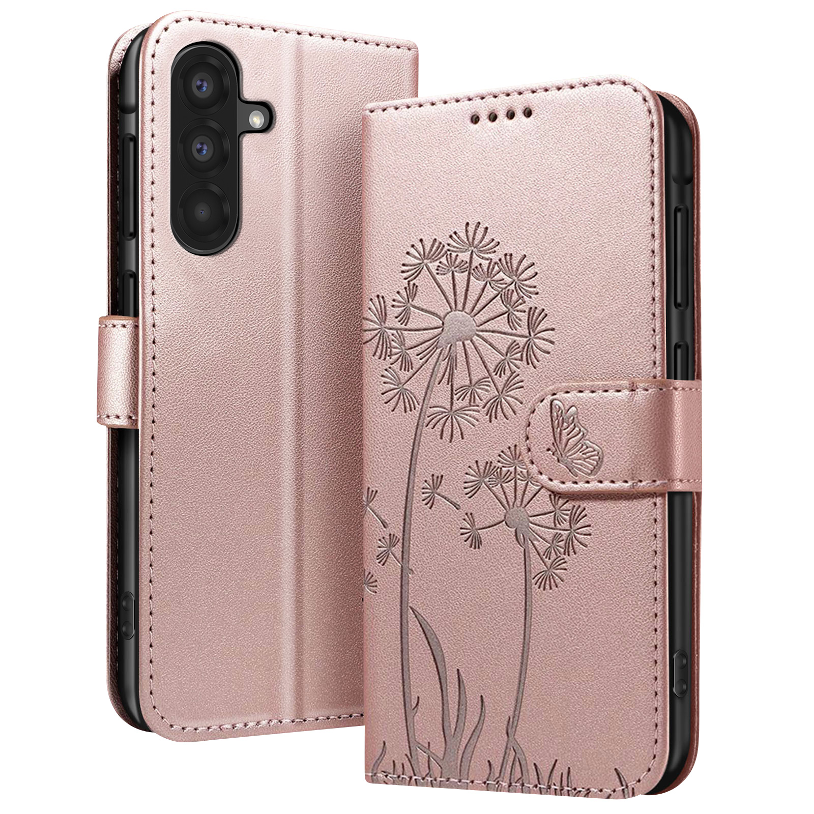 Protégez votre Samsung Galaxy A56 / A36 avec élégance grâce à cet étui portefeuille Zanaé rose champagne. Son PU haut de gamme est décoré d'un motif pissenlit et papillon gravé pour un style raffiné. Il offre une protection complète avec coque intérieure souple, fermeture magnétique, rangements pour cartes et billets, ainsi qu'un support vidéo pratique pour vos contenus multimédia.