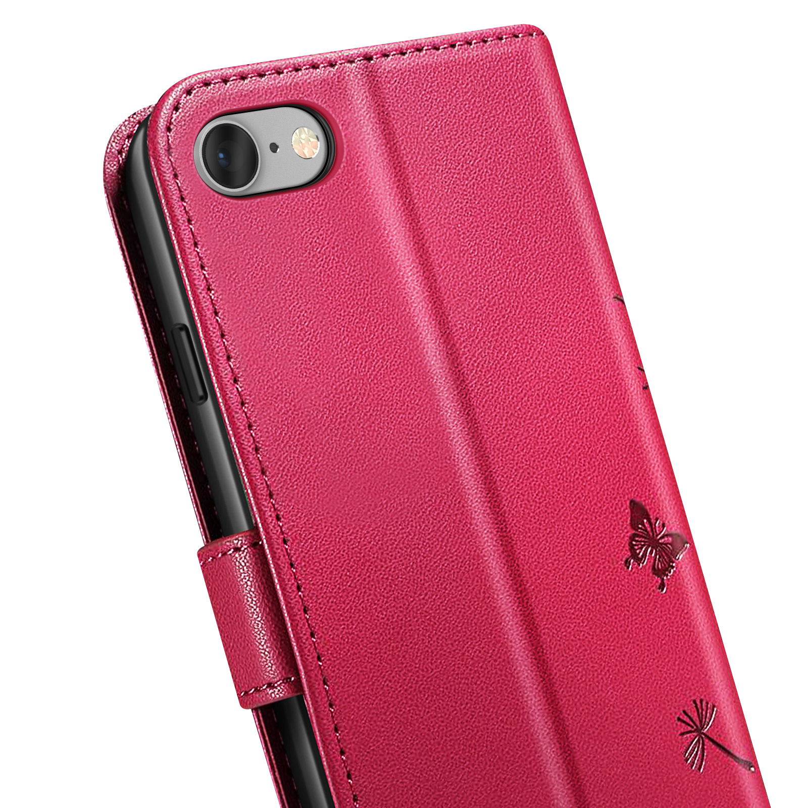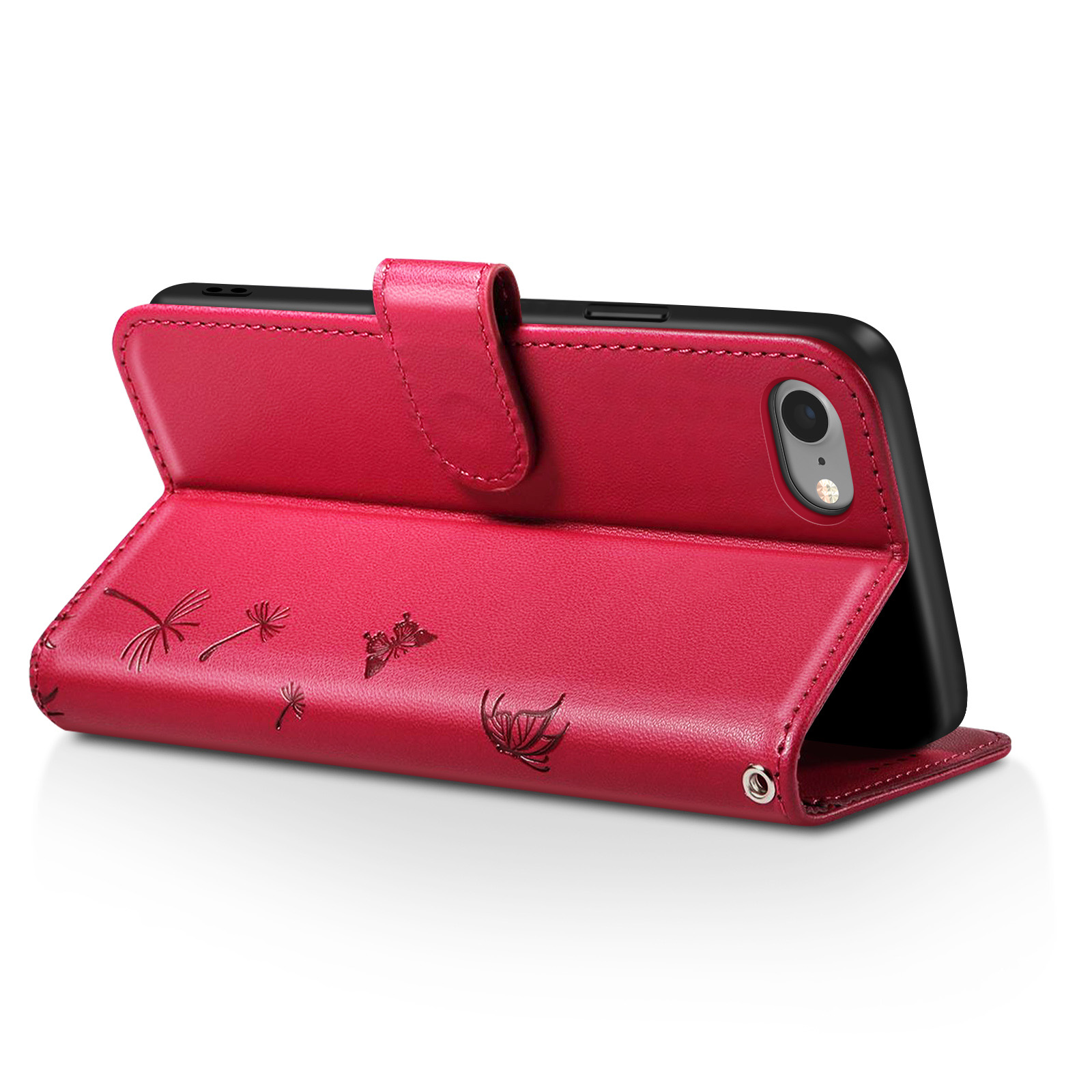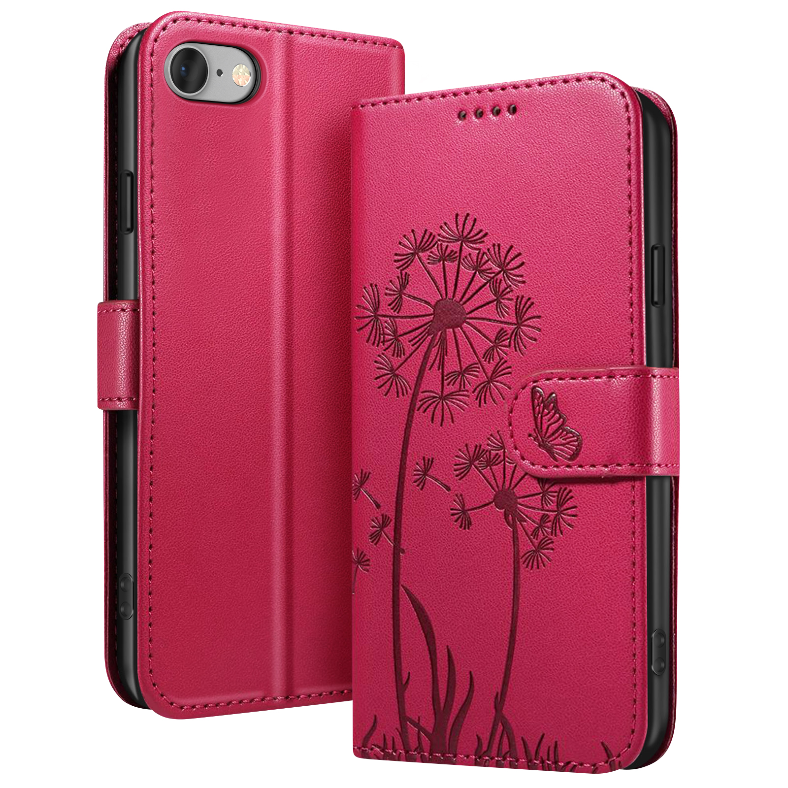 Protégez votre iPhone 7 / 8 / SE / SE 2022 avec élégance grâce à cet étui portefeuille Zanaé rouge. Son PU haut de gamme est décoré d'un motif pissenlit et papillon gravé pour un style raffiné. Il offre une protection complète avec coque intérieure souple, fermeture magnétique, rangements pour cartes et billets, ainsi qu'un support vidéo pratique pour vos contenus multimédia.