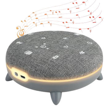 Laissez-vous bercer par les 5 sons immersifs et apaisants proposés : Chant des cigales, Feu de cheminée, Pluie et orage, Eau de la rivière, Bruit des vagues. Les 2 sons additionnels sont des bruits blancs de la télévision et de la radio. Un bruit blanc est un son constant et monotone qui permet de masquer d’autres bruits venus de l’extérieur et qui favorise l’endormissement des bébés.