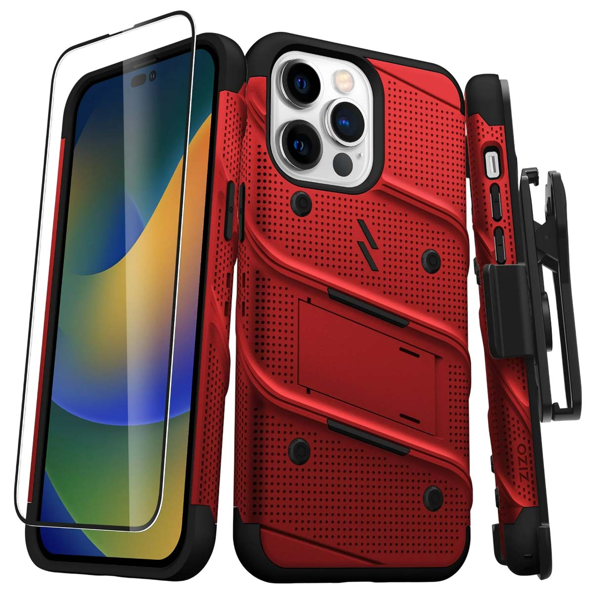 Zizo Coque Blindé Bolt iPhone 14 Pro Max avec Support et Verre Trempé Ultra Résistant Noir / Rouge