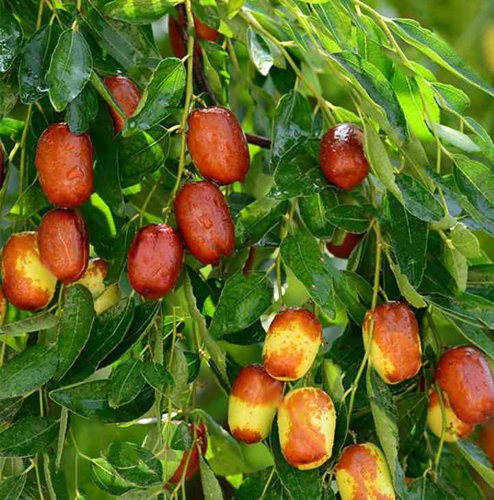Le jujubier a un feuillage vert brillant avec des branches épineuses. sa fructification donne un petit fruit ovale à la consistance et au goût d'une pomme. Il est d'abord lisse et vert (il peut être consommé ainsi) puis prend une coloration noir violacé. les fruits sont alors séchés avec une consistance semblable à celle d'une datte. Il est très utilisé dans la cuisine chinoise (thé de jujube, condiment, vinaigre, vin....) mais aussi en médecine chinoise (antiparasitaire, insomnie, bon pour la régulation du foie et les poumons, problème de peau comme eczéma.. .).