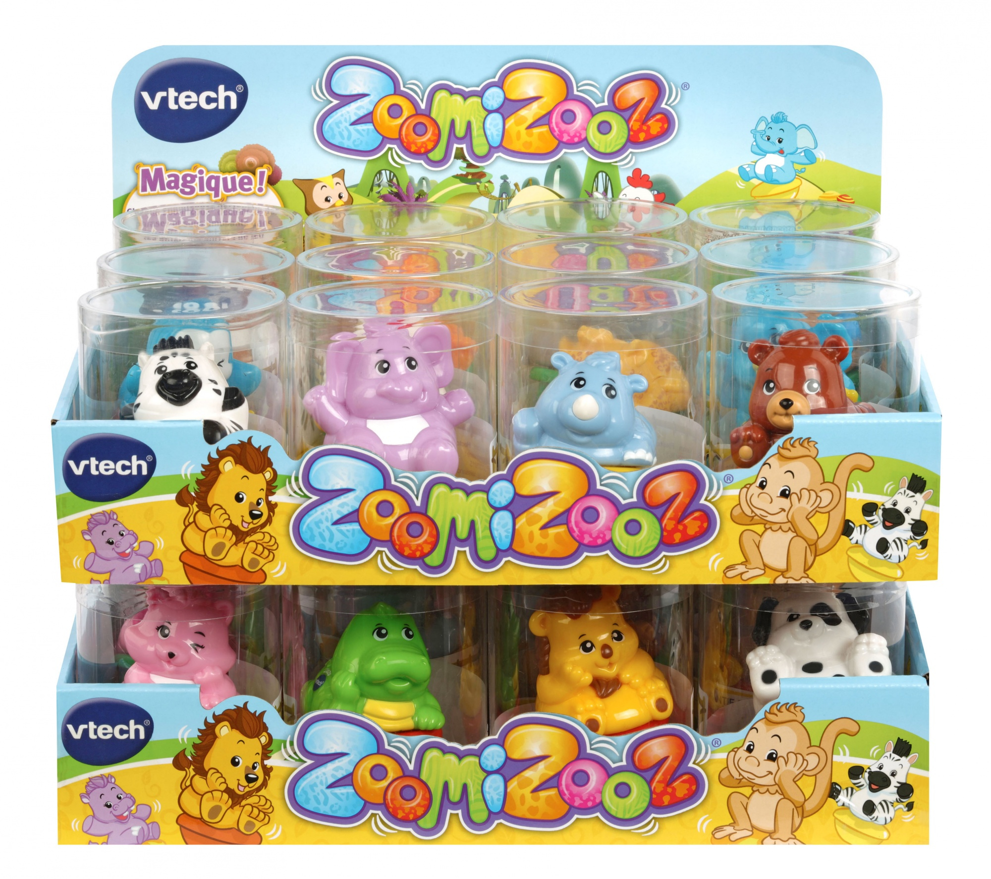 ZoomiZooz - Animaux culbuto - 1 - 5 ans Génial ! Leur base arrondie les fait se balancer dans tous les sens. Les animaux interagissent de différentes façons dans les univers de jeu : il sautent, tournoient et font des pirouettes ! Les univers de jeu sont interactifs grâce à la Zoomi-zone magique : une fois placés sur la Zoomi-zone, les ZoomiZooz sont tous reconnus et déclenchent des phrases amusantes. Compatibles avec tous les univers de jeu de la collection ZoomiZooz. Présenté en tube individuel, en présentoir de 24 pièces.