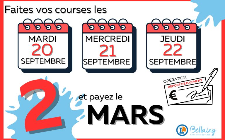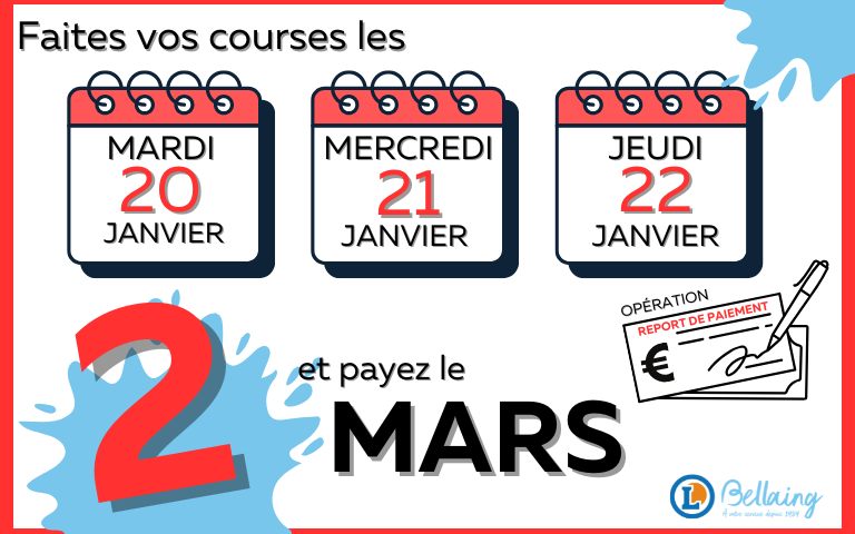 Du 20 au 22 janvier, faites vos courses dans votre E.Leclerc Bellaing et payez le 2 mars !