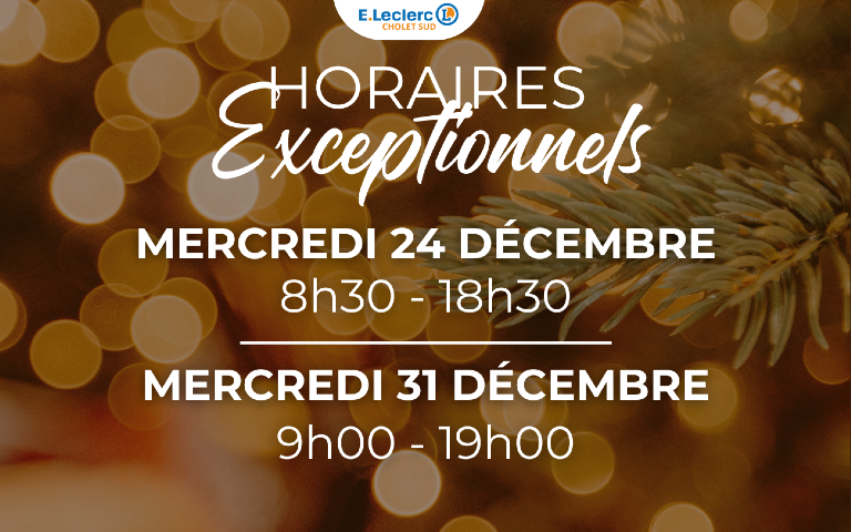 le 24 décembre 2025 de 08H30 à 18H30 Fermetures exceptionnelles