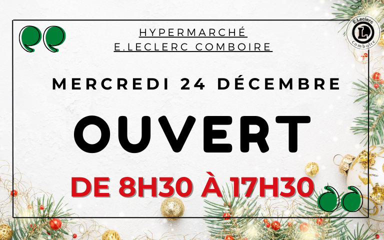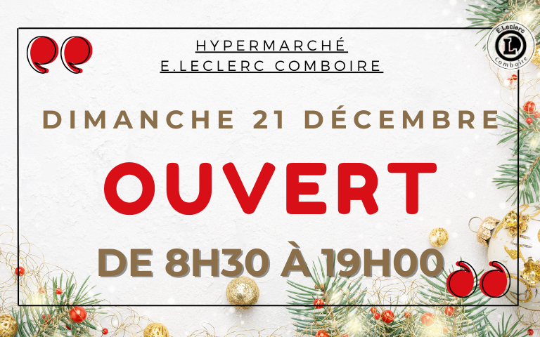 le 21 décembre 2025 de 08H30 à 19H00 Fermetures exceptionnelles