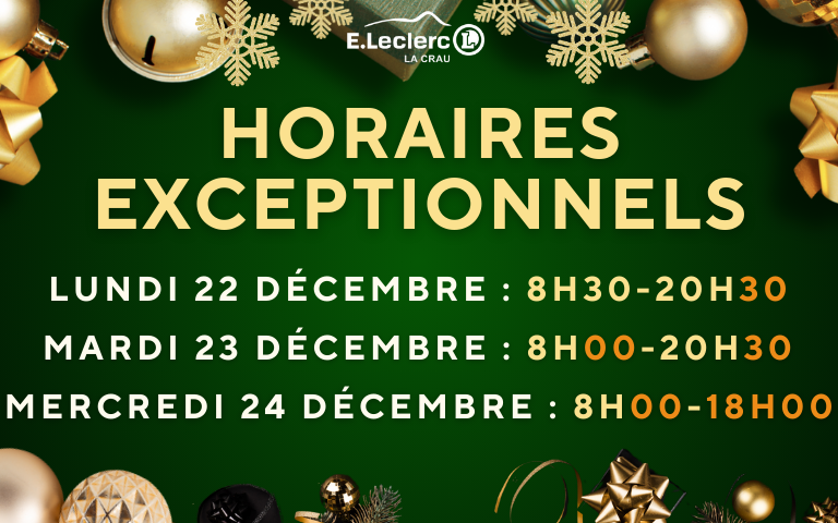Pour répondre au mieux à la demande pendant la période festive, nous ajustons nos horaires. Le magasin sera ouvert :