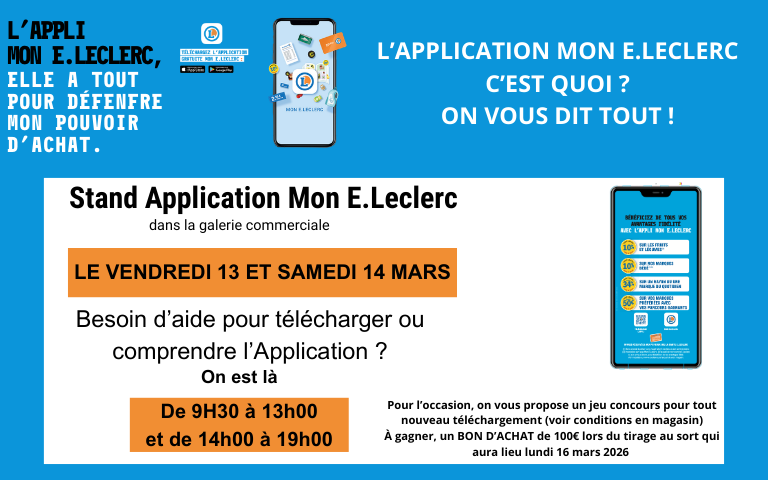 Nous avons décidé de mettre en place une TOMBOLA dans l'application Mon E.Leclerc à partir du mercredi 10 décembre 2025