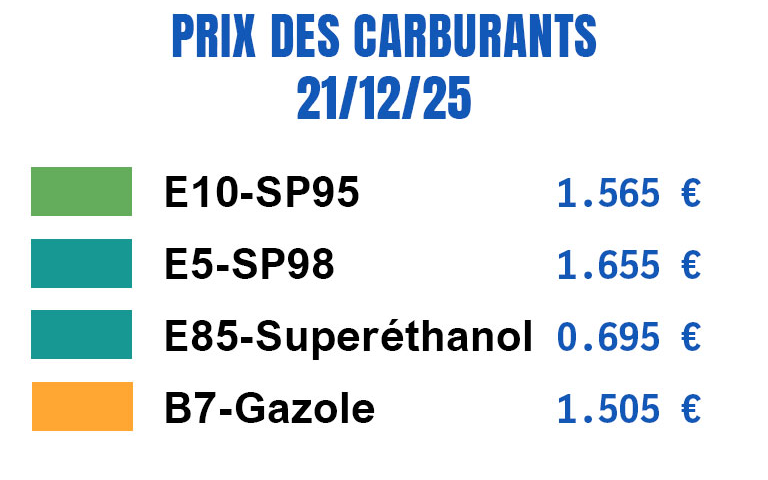 Prix des carburants de votre magasin au 21/12/2025 à 21H05