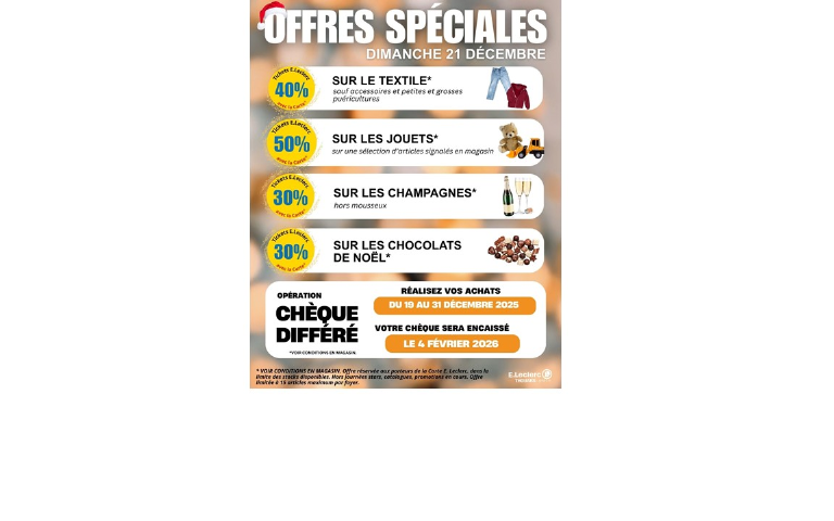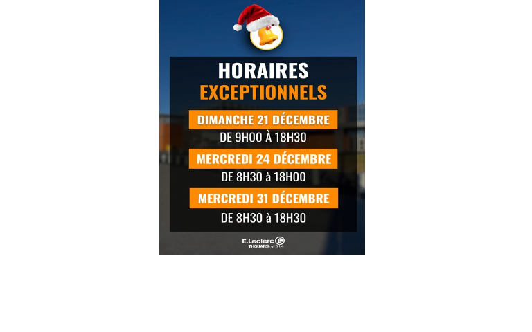 le 21 décembre 2025 de 09H00 à 18H30 Fermetures exceptionnelles